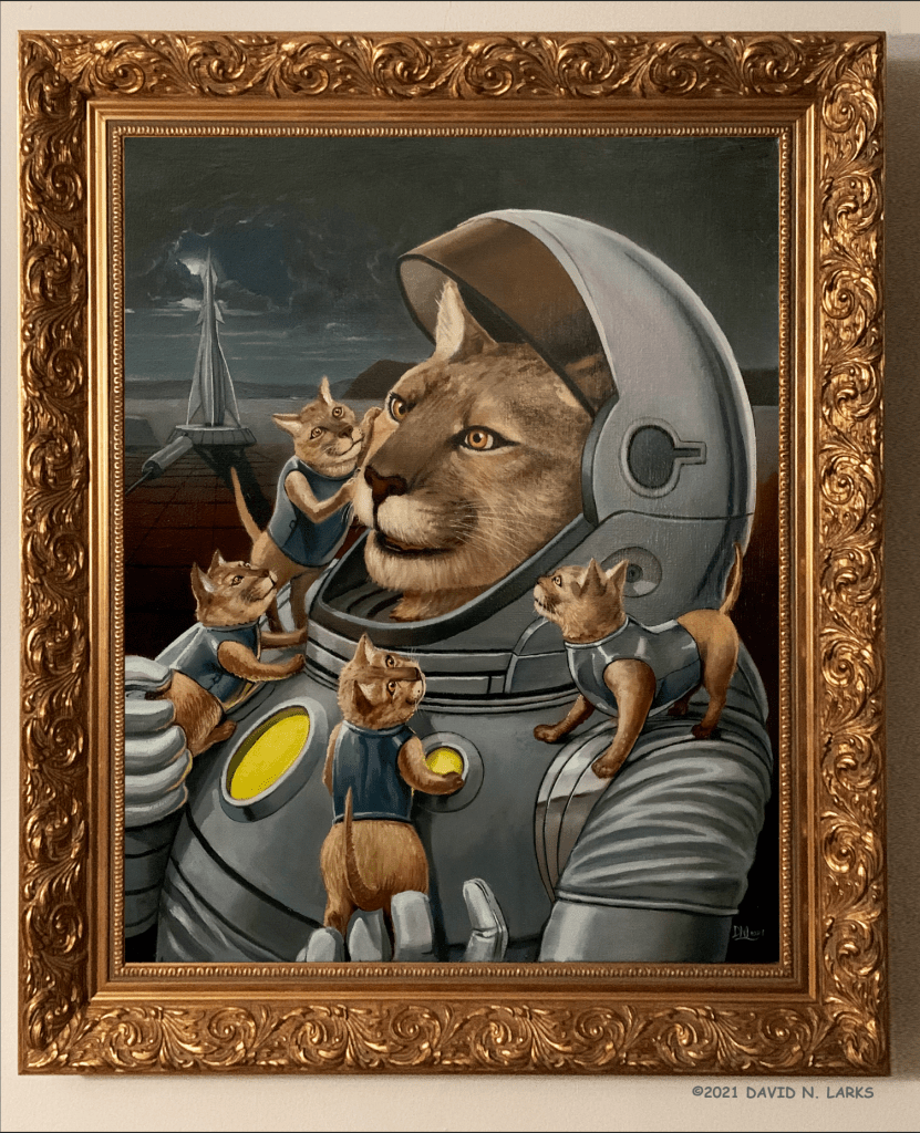 Below….These paintings were created in Oils on Canvas 24X36. I used Midjourney prompts to create useful reference images that when combined with some compositing and digital over painting I ended up with the final reference used for these original oil paintings. Arrrrrrgg Matey.